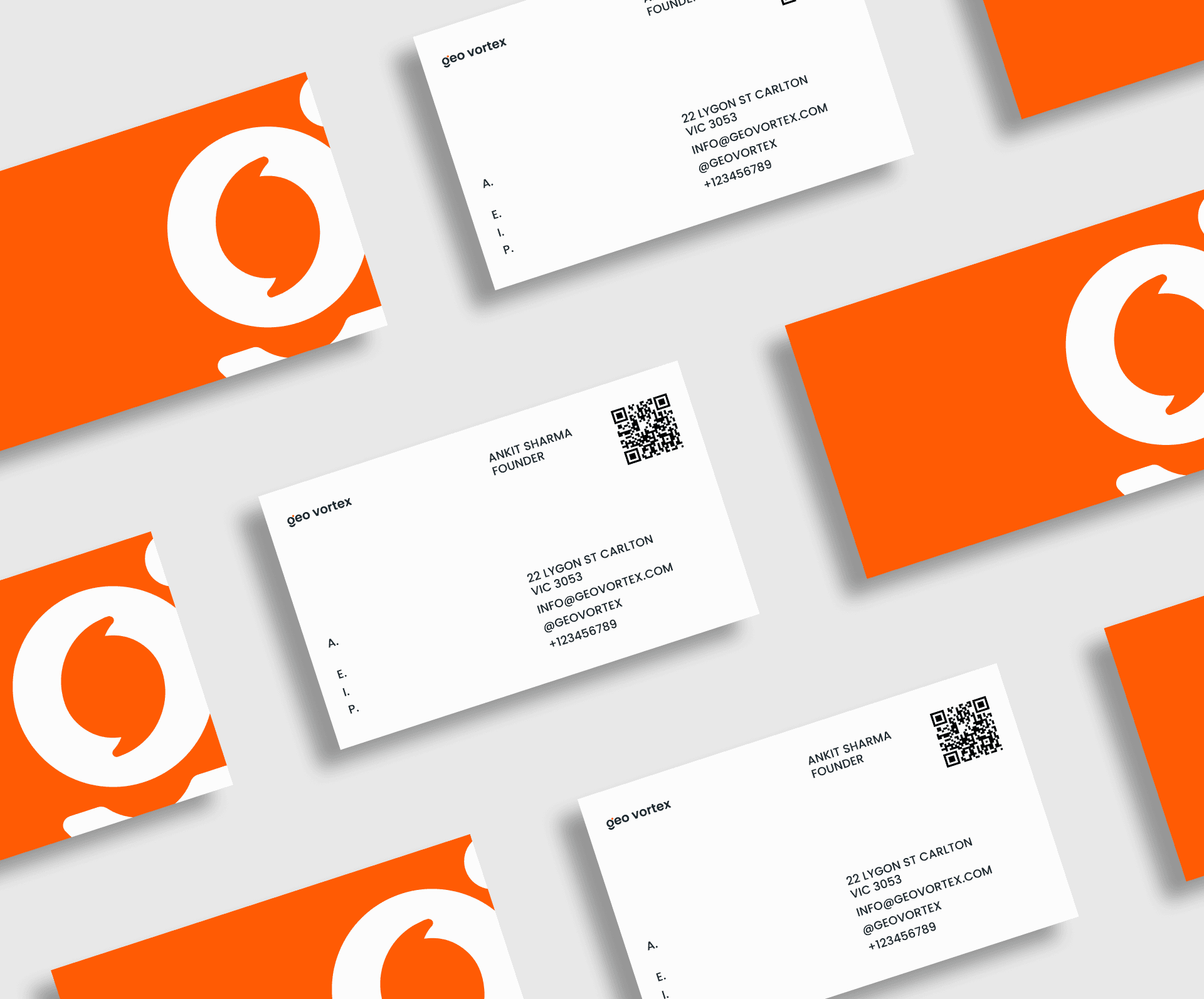 The typography of Geo Vortex is built around a custom wordmark derived from Poppins, a modern geometric sans-serif typeface. Poppins was chosen for its clean shapes, balanced proportions, and strong geometric foundation, which aligns naturally with Geo Vortex’s focus on structure, systems, and spatial logic.