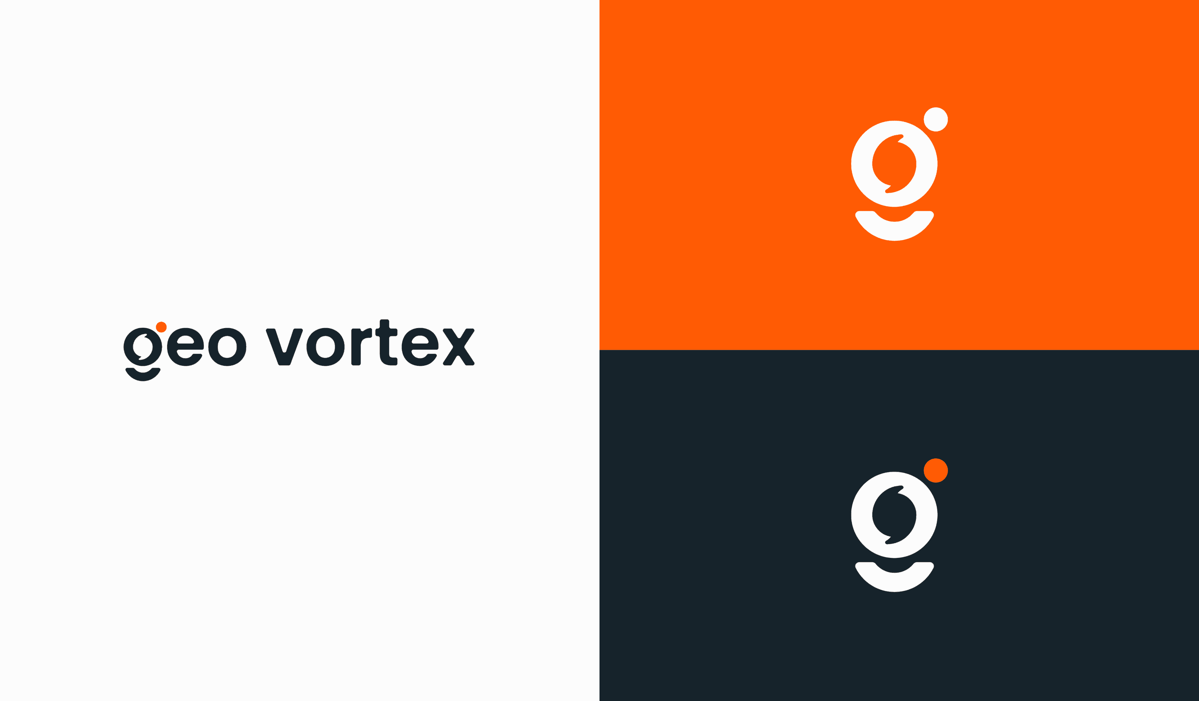 The logo was designed as a minimal vector vortex shape built from simple geometry. A vortex naturally represents movement and convergence, which aligns with how Geo Vortex works—pulling scattered data points into a single focused view. The small dot acts as a focal point, symbolizing a key data signal or location of interest.