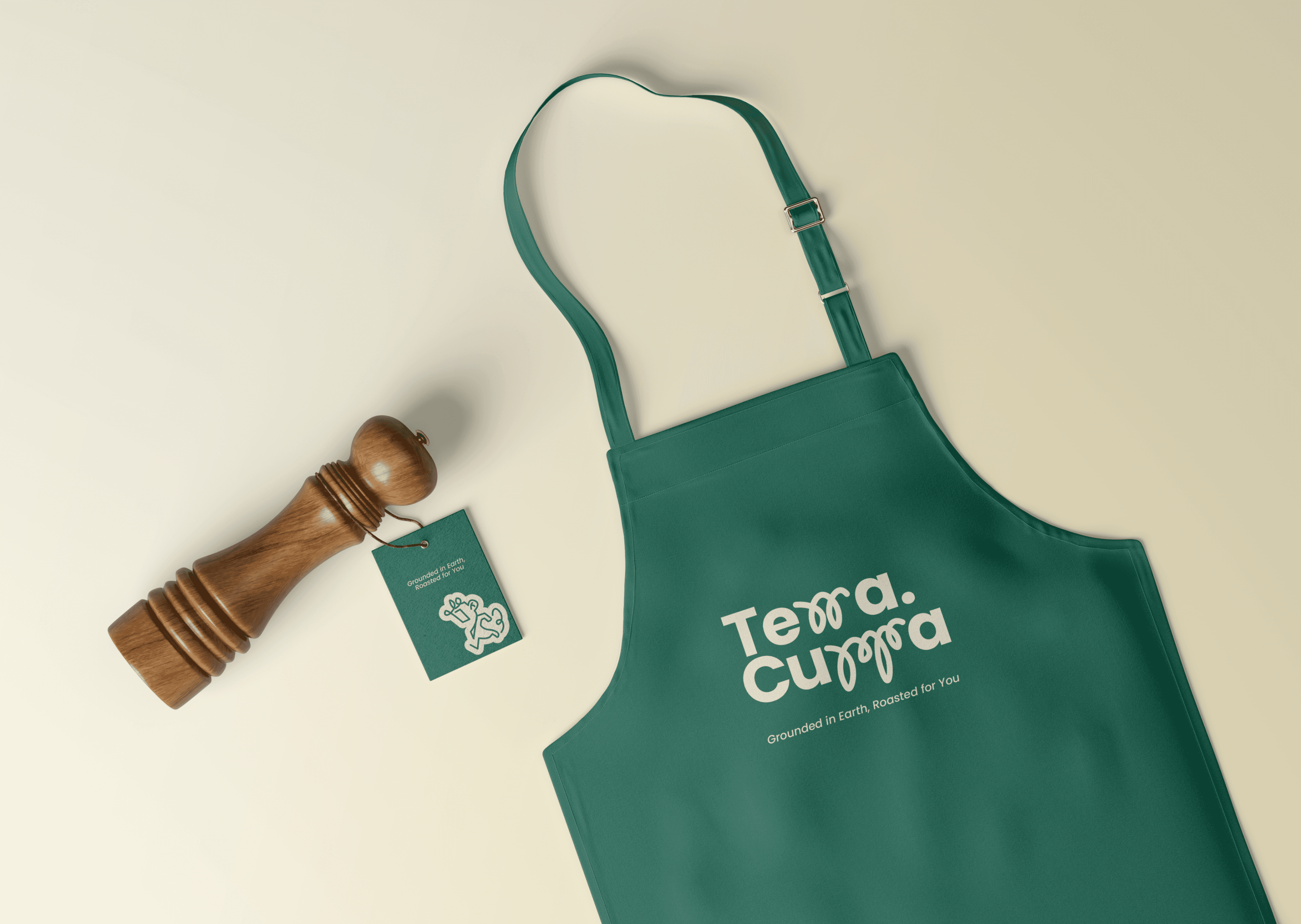 The Terra Cuppa logotype is designed to feel organic and expressive while remaining clean and contemporary. The custom letter connections subtly mimic natural forms—roots intertwining, vines growing, or hands coming together—symbolizing connection between earth, people, and coffee.
