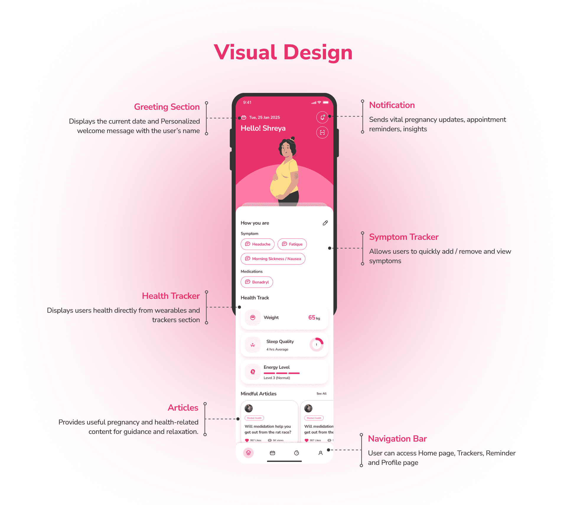 The core challenge was: How might we streamline daily pregnancy care while designing an experience that feels comforting, supportive, and distinctly human?